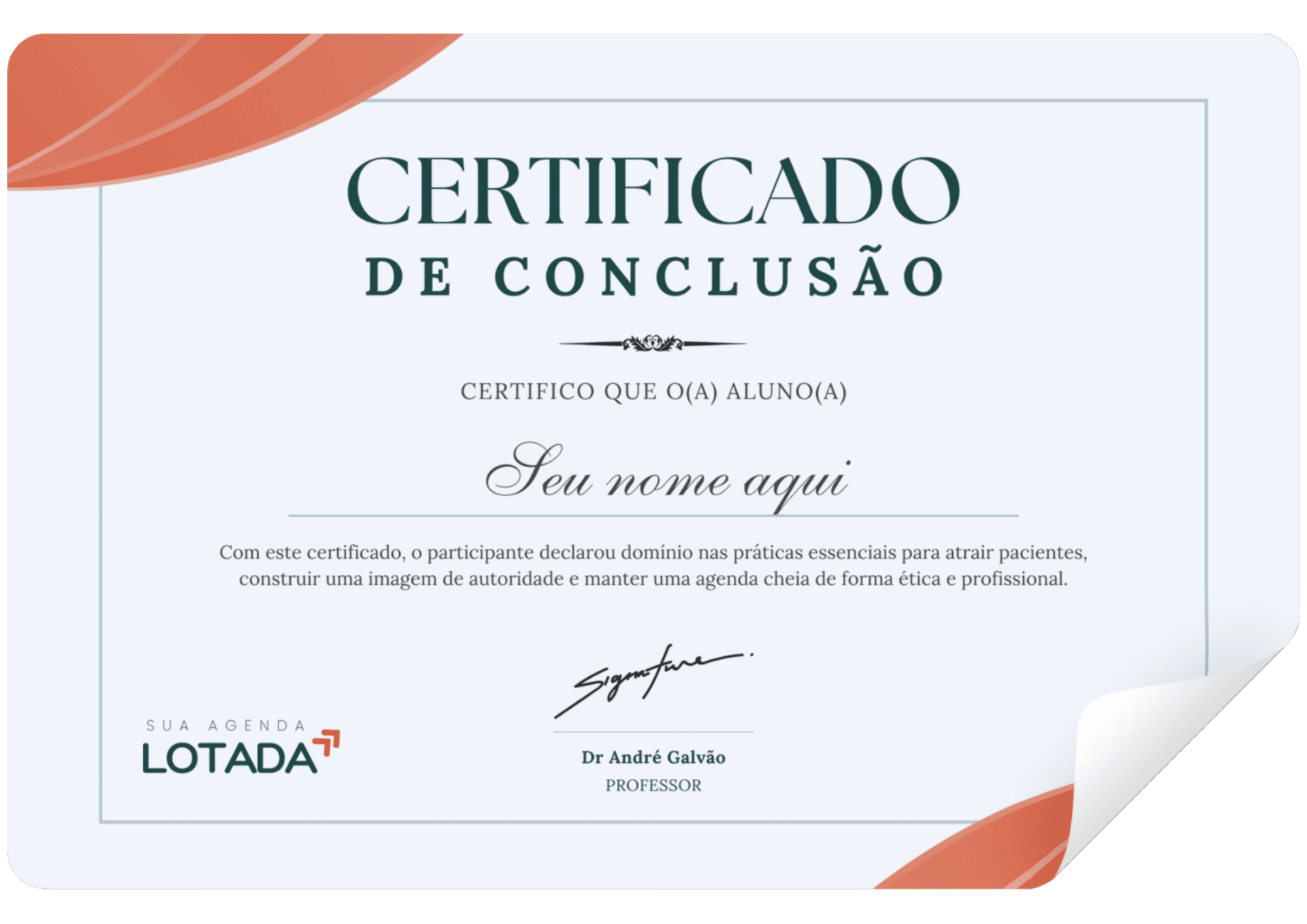 Ao finalizar o curso “Sua Agenda Lotada” , você receberá um certificado de conclusão que comprova seu aprendizado e dedicação.